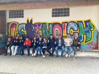 Jeder der Teilnehmenden durfte einen Buchstaben individuell gestalten, und so entstanden sieben völlig unterschiedliche und originelle Kunstwerke, die sich perfekt zu einem lebendigen Gesamtbild zusammenfügen. Der Kronacher Künstler Jochen May stand den Jugendlichen mit Rat und Tat zur Seite und half dabei, ihre Ideen professionell auf die Wand zu bringen. Ein großes Lob an unsere jungen Künstler, die mit viel Eifer und Kreativität den Schriftzug gestaltet haben!