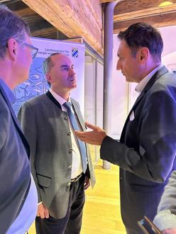 Im Anschluss an die Veranstaltung hatte Bürgermeister Neubauer die Gelegenheit, das Bürgerwindparkprojekt Weißenbrunn-Gössersdorf persönlich Wirtschaftsminister Hubert Aiwanger vorzustellen und dabei die Besonderheiten des kommunalen Ansatzes zu erläutern.