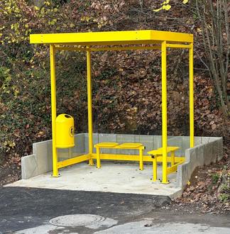 Vom Abriss der in die Jahre gekommenen Anfahrtstelle des ÖPNV, bis hin zum Fundament einbringen, Beton-L-Steine setzen, asphaltieren und Montage des Unterstandes ist alles in Eigenregie des Bauhofes erledigt worden.