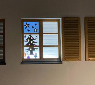 Die Kinder der Offenen Gesamttagsschule Weißenbrunn haben insgesamt 24 Fensterbilder gebastelt, um die Fenster des Rathauses Weißenbrunn bis zum Weihnachtstag zu verschönern.
