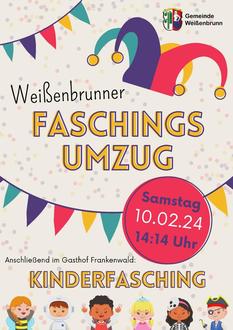 Endlich ist es wieder so weit. Der Weißenbrunner Faschingsumzug kann endlich wieder stattfinden. Am 10.02.2024 um 14:14 Uhr startet der Umzug. Die Route ist die altbekannte. Los geht’s am Feuerwehrhaus. Von dort ziehen die Närrinnen und Narren über die Bundesstraße in Richtung Gasthof Frankenwald. Nach dem Umzug findet wieder der Kinderfasching mit einem spaßigen Programm im Saale Räther statt. Für das leibliche Wohl ist natürlich bestens gesorgt. Die TSV Funkensternchen verwöhnt Sie mit Kaffee und Kuchen. Kaltgetränke und weitere Speisen gibt es im Gasthof. DJ Mike Fößel sorgt für gute Stimmung im Saal.