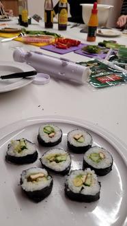 Sieben motivierte Mädchen wagten sich mit viel Spaß und Begeisterung an die eigene Sushi-Zubereitung. Ob klassisch oder kreativ – es wurde gerollt, gelacht, probiert und am Ende stolz das selbstgemachte Sushi genossen. Die Freude am gemeinsamen Tun war deutlich spürbar und der Nachmittag verging wie im Flug.