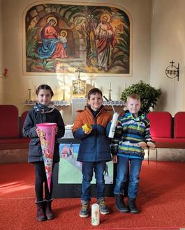 Die Erstkommunionkinder Valentina, Jona, Oskar und Jason werden von Claudia Popp und Clara Lurz begleitet und auf den besonderen Tag am 26. April vorbereitet. In wöchentlichen Treffen werden die Kinder unterstützt, eine Freundschaft mit Jesus zu entwickeln, eine Gemeinschaft des Glaubens zu erfahren und den Gottesdienst kennenzulernen.