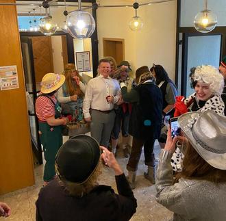 Die Rathausstürmerinnen, bunt kostümiert und voller Energie, marschierten ins Gebäude und ließen sich durch nichts aufhalten. Der Kassenverwalter versuchte noch, sich mit einer schnellen Drehung aus der Affäre zu ziehen – vergeblich!