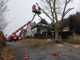 Im Rahmen der jährlichen Baumkontrolle wurden in der vorletzten Woche unter anderem die Platane am Mühlberg sowie die Eiche am Kindergarten fachgerecht gepflegt. Eine spezialisierte Fachfirma setzte hierfür eine Hebebühne ein, um alle Arbeiten sicher und präzise ausführen zu können.