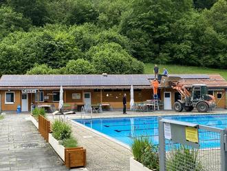Ein besonderes Projekt war die Installation einer Photovoltaikanlage auf dem Dach des Mehrzweckgebäudes. Dank der Unterstützung von Vereinsmitglied Uli Volk und Franz Schuberth (FS-Solar-Energie KG) konnte die Anlage mit 64 Modulen und einer Leistung von 24 Kilowattpeak realisiert werden. Seit dem Betriebsstart am 1. Juni 2024 wurden 10,9 Megawattstunden Sonnenenergie produziert, wovon 7,56 MWh für den Eigenverbrauch genutzt und 3,36 MWh ins öffentliche Netz eingespeist wurden. Damit deckt die Anlage etwa 40 % des Strombedarfs des Schwimmbads und spart 4.524 kg CO₂ ein – dies entspricht der Leistung von 135 Bäumen.