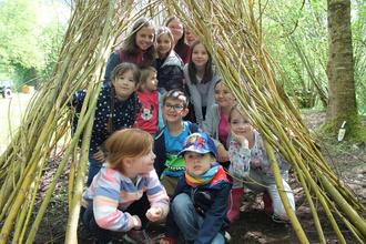 Voller Stolz und Freude testeten die Kinder der Jugendgruppe Maulwürfe das neue Weidenzelt!
