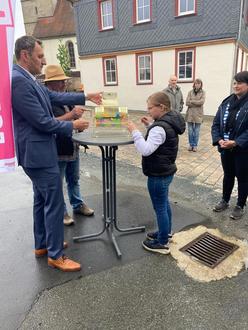 Ein weiterer Programmpunkt des Festes war die Verlosung zur Namensgebung für das neue Gemeindezentrum. Im Vorfeld waren alle Bürgerinnen und Bürger eingeladen, kreative Namensvorschläge einzureichen – 35 Personen machten mit.