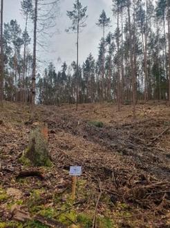| • | Geplante Verjüngungsnutzung im Fichten-/Kiefernbestand mit Vorverjüngung von Fichte und Rotbuche |