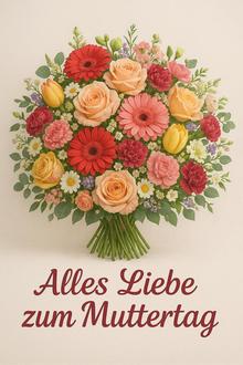 Ich wünsche Ihnen von Herzen einen Muttertag, der Ihnen guttut. Möge er Ihnen schenken, was Sie so oft anderen geben: Zuwendung, Freude und das Gefühl, wertvoll zu sein.