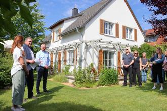 Im Jahr 1998 öffneten sich zum ersten Mal die Pforten ausgewählter Gärten im Kreisverband Coburg für Gartenbau und Landespflege e.V. Seitdem hat sich die Veranstaltung als fester Bestandteil des Jahresprogramms etabliert und diente als Vorbild für ähnliche Aktionen in Oberfranken und Bayern. Hunderte von Gärten und Besucherzahlen weit im fünfstelligen Bereich waren in den letzten Jahrzehnten Teil der beliebten Veranstaltung. Am Sonntag, 9. Juni hieß es bei idealem Gartenwetter „hereinspaziert in unsere Neundorfer Gärten“. Die 1. Vorsitzende des OGV Neundorf Pia Dohles und ihr engagiertes Team hatten sich auf diesen Tag in Zusammenarbeit mit dem Kreisverband bestens vorbereitet und 10 private Gartenparadiese, die sie zu einer Gartentour zusammengestellt hatten, sorgsam ausgewählt. Viele kulinarische Köstlichkeiten wurden für die Besucher am Festplatz aufgetischt. Die Eröffnung fand im Garten der 1. Vorsitzenden statt. 2. Vorsitzender, Reiner Brücker begrüßte in Vertretung von 1. Vorsitzenden Landrat Sebastian Straubel die anwesenden Gartenfreunde. „Aus jedem Garten lässt sich etwas Tolles machen. Dazu gehört Mut zur Umsetzung eigener Vorstellungen, gepaart mit Fachwissen, aber auch der Mut sich nicht durch irgendwelche Trends beeinflussen zu lassen. Naturnah im Einklang von Mensch und Natur schaffen wir uns unsere Gartenparadiese, unseren Traum von Garten“ so Brückner. Bürgermeister Hans Steinfelder hatte ein dickes Lob für den OGV Neundorf mitgebracht: „Es ist toll, was Ihr alles so leistet“. Pia Dohles fühlte sich stolz mit ihrem Team zusammen mit der harmonischen Neundorfer Dorfgemeinschaft Teil dieser klassischen Veranstaltung sein zu dürfen. Geschäftsführer Thomas Neder bedankte sich mit einem Staudenpräsent in Form eines dekorativen Reitgrases aus der Zuchtfeder des bekannten Staudenexperten und Gartenpoeten Karl Förster bei allen Teilnehmern. Nach der offiziellen Eröffnung startete der Rundgang durch die stolzen, charakterstarken Gärten, die natürlich alle unterschiedliche Schwerpunkte hatten. Viele Teilnehmer waren bereits seit dem Start der offenen Gartentür vor 26. Jahren immer wieder dabei, so z.B. Karin Schnellhardt, langjähriges ehemaliges Beiratsmitglied des Kreisverbandes. An der Veranstaltung schätzt sie vor allem die vielen Anregungen, die man sich auf den Rundgängen holen kann und den fachlichen und persönlichen Austausch mit Gleichgesinnten.