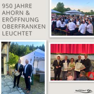 Auf Einladung der Gemeinde Ahorn nahm Bürgermeister Hans Steinfelder am Freitagabend an einem feierlichen Festakt anlässlich des 950-jährigen Gemeindejubiläums sowie der offiziellen Eröffnung von „Oberfranken leuchtet“ teil.