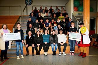 Viele Beteiligte, großer Erlös! In der TSV Sporthalle wurde die Spende der Weitramsdorfer Dorfweihnacht mit je 3000 Euro an die „KlinikClowns“ und das „Wohnnest“ übergeben.