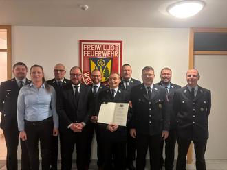 Eine besondere Freude war es mir, gemeinsam mit Landrat Sebastian Straubel unserem Feuerwehrkameraden Gerhard Moser die staatliche Auszeichnung für 40 Jahre aktiven Feuerwehrdienst überreichen zu dürfen. 40 Jahre Dienst bedeuten viele Einsätze, viel Zeit für Ausbildung und vor allem ein langjähriges und verlässliches Engagement für die Sicherheit anderer. Dafür gebührt ihm unser aller Dank.
