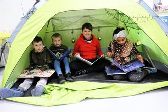 Lesehöhle: Von Anja Strobel und ihrer Kollegin Jessica Lange wurden kuschlige Lesehöhlen geschaffen, in denen sich die Kinder in ihre Lektüre vertiefen können.