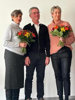 Verabschiedung des langjährigen Vorstandes Bernd-Ulrich Schmölz (Mitte) umrahmt von erster Vorsitzender Carolin Gehrlicher (rechts) sowie zweiter Vorsitzender Karina Strehler (links).