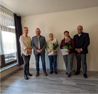Von links nach rechts: Erste Vorsitzende Carolin Gehrlicher, Bürgermeister Hans Steinfelder, Angelika Loßner für 25-jährige Vereinszugehörigkeit, Margit Bauer für 40-jährige Zugehörigkeit und Landrat Sebastian Straubel.