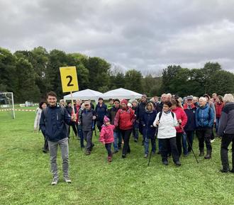 Rodachtal, 11.10.2024 - Unentschlossenes Wetter mit leichten Schauern konnte die rund 300 Teilnehmerinnen und Teilnehmer am 28. Thüringisch-Fränkischen Wandertag weder beeindrucken, noch ihnen die gute Stimmung eintrüben. Bis von Erfurt und Nürnberg kamen die Gäste am 3. Oktober an den Sportplatz in Eishausen, um den Tag der Deutschen Einheit gemeinsam wandernd zu feiern.