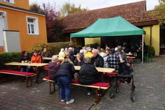 Weitramsdorf - Bereits am Samstagnachmittag gab es den Auftakt zur Weitramsdorfer Kirchweih. Um 14 Uhr eröffneten die Basardamen ihren Verkaufsraum im ehemaligen Gemeindezentrum, was auch tüchtig durch interessierte Käufer nachgefragt wurde. 00Am Sonntagmorgen versammelte sich die evangelische Gemeinde zum Kirchweihgottesdienst in der unter Restauration befindlichen Nikolauskirche, der von den neuen Konfirmanden ausgestaltet wurde. Zehn Fragen zum Thema „Taufe“ mussten die Gottesdienstbesucher ihnen in einem Kirchenquiz beantworten, für zehn Richtige gab es einen Bratwurstgutschein für das Kirchweihtreiben vor dem Pfarrhaus am Nachmittag. Der Frühschoppen im Nachgang, ausgerichtet durch Kirchenvorstand Uli Kräußlein und Konfirmandeneltern mit ihren Kindern, fand regen Zuspruch. Am Nachmittag spielten dann die Upper Frankonian Old Stars unter der Leitung von Hartmut Braune-Bezold mit ihren Dixie- und Jazzsongs auf und lockten viele Zuhörer auf den Parkplatz vor dem Pfarrhaus. Das Wetter ließ die Veranstalter auch nicht im Stich. Durch die versammelten Kräfte des Kirchenvorstandes wurde die Veranstaltung zu einem Erfolg. Sowohl kalte Getränke, Kaffee und Kuchen sowie Strehlers Bratwürste fanden ebenso wie die kreativen Schöpfungen der Basardamen rege Nachfrage.