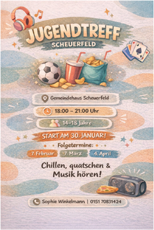 | 14.30 Uhr | Sonntagscafé (Gemeindehaus Scheuerfeld) |