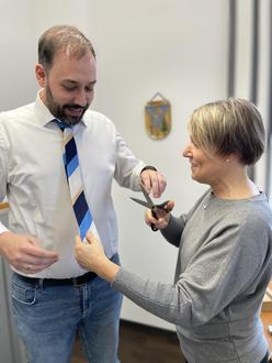 Auch in Weitramsdorf hat sich der Bürgermeister lange gewehrt, aber letztendlich musste er sich doch geschlagen geben und es hieß „Schnipp Schnapp und die Krawatte war ab“.
