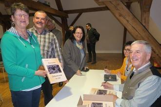Der Autor Alois Heim (rechts) bei der Widmung der Bücher nach der Buchvorstellung
