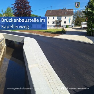 Die Arbeiten am Neubau der Brücke im Kapellenweg über den Weiherbach sind weit vorangeschritten. Am Montag, den 19. Mai, wurde die Asphaltdecke eingebaut – ein weiterer Schritt zur Wiederherstellung der Verkehrsverbindung.
