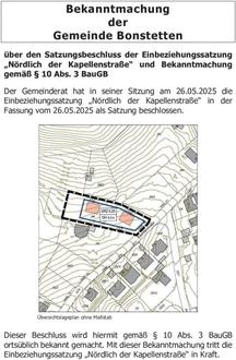 Satzungsbeschluss der Einbeziehungssatzung „Nördlich der Kapellenstraße“