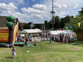 Schon von weitem begrüßten bunte Wimpelketten die Besucher am vergangenen Samstag. Denn der Elternbeirat der Kindertagesstätte St. Stephan Bonstetten lud Familien, Jung und Alt, Groß und Klein, zum ersten Bonstetter Spielplatzfest ein. Die Gemeinde hatte den Spielplatz erst im vergangenen Herbst neugestaltet und erklärte sich gerne dazu bereit, als Mitveranstalter zu fungieren. Nach einem Auftritt der Kindergarten- und Krippenkinder, die gemeinsam mit ihren Erzieherinnen einige Lieder zum Besten gaben, war für die Kinder einiges geboten: Neben einer großen Hüpfburg und Kinderschminken gab es bei einem Glücksrad tolle Preise zu gewinnen. Bei einer Verlosung konnte einem glücklichen Gewinner ein neues Bobbycar überreicht werden. Pizza, Kaffee und Kuchen, Eis sowie ein buntes Programm lockten bei bestem Wetter über 200 Besucher zum bunt geschmückten Dorfpark in Bonstetten.