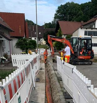 Seit einigen Tagen werden Leerrohre in der Stauffersbergstraße, anschließend in der Raiffeisenstraße und dann im Eichberg, verlegt.