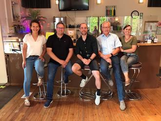 Freuen sich über den Startschuss für die interkommunale mobile Kinder- und Jugendarbeit - IMoKJA (v.l.n.r): Regionalmanagerin Hummel, stellv. Vorsitzender Scheider, Mitarbeiter der IMoKJA Jan Markus, Bürgermeister Gleich, Melanie Zacher, pädagogische Leitung KJR.