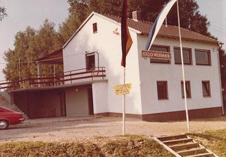 Damals wurde im Laufe der Jahre der Wunsch nach einem eigenen Vereinsheim am Sportplatz immer nachhaltiger. Einen Markstein für dieses Bauvorhaben hatte trotzt vieler Schwierigkeiten der damalige Vorstand Hermann Schwientek im Jahr 1966 gelegt. Kaum einer hat damals an die Verwirklichung seines Vorhabens geglaubt. Nach vielen Beratungen und Überlegungen war es dann soweit, dass Siegfried Knöpfle den Bauplan ausarbeiten konnte. Die Gemeinde stellte den Baugrund an der verlängerten Sportplatzstraße bereit. Nach langen Verhandlungen und Planungen begann man 1968 mit dem Bau. Eine Bausteinaktion schaffte den finanziellen Grundstock für dieses Vorhaben. Trotz vieler freiwillig geleisteter Arbeitsstunden kam es immer wieder auf der Baustelle zum Stillstand. Gerade deshalb, weil der Bau „aus der Not geboren wurde“, so Vorstand Josef Lauter bei seiner Ansprache bei der Einweihung.