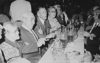 Einweihung des ersten Sportheimes vom 25. bis 27.8.1972, im Bierzelt, linke Reihe von links Bürgermeister Georg Brummer, Landrat Anton Rauch, Notburga Brummer, Pfarrer Karl Buck, rechts Josef Kuchenbaur sen.