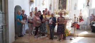 Der Katholische Frauenbund Emersacker-Modelshausen hat bei seiner letzten Sitzung im Juli für die Auflösung des Vereins nach 45 Jahren gestimmt. Im Festgottesdienst zu Maria Himmelfahrt wurde der Verein von der Pfarrei noch einmal gewürdigt und alle im Vorstand tätigen Damen erhielten ein Geschenk. Pfarrer Dr. Joachim Seiler überreichte zudem ein goldenes Abzeichen an Roswitha Felber, die den Verein 33 Jahre leitete. Unser Bild zeigt die Vorstandschaft des Frauenbundes sowie Pfarrer Dr. Joachim Seiler und Kirchenpfleger Siegfried Karner.