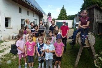 Ganz aufgeregt erwarten die 16 Kinder ihren Pferdeerlebnistag bei Marion Kopold am Bibertalhof in Lauterbrunn. Gesponsert wurde der Nachmittag vom Verein „Pferde für unsere Kinder e.V.“ Frau Kopold und ihr Pferdehof – Reiten & Therapie – hatten diesen Preis gewonnen – herzlichen Glückwunsch! Er soll Kindern die Möglichkeit geben Kontakt zu Pferden zu bekommen – unsere Ferienkinder waren begeistert – sie lernten, erfuhren viel und hatten Freude an den Pferden.