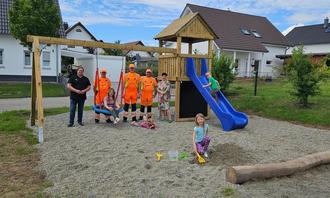 Große Freude bei den Kindern in Reutern: Der beliebte Wasserspielplatz wurde nicht nur instandgesetzt, sondern auch um neue Spielgeräte erweitert. Ab sofort bereichert ein Spielturm mit Schaukel und Rutsche das Gelände und sorgt für noch mehr Spaß und Bewegung an der frischen Luft.