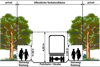 Wir weisen darauf hin, dass sämtliche öffentliche Verkehrsflächen jederzeit freizuhalten sind und der überhängende Bewuchs entsprechend zurückzuschneiden ist (= Freihaltung des sog. Lichtraumprofils). Das Lichtraumprofil umfasst die seitlichen Bereiche bis zur Grundstücksgrenze / Übergang öffentlicher Verkehrsraum sowie über Geh- und Radwege bis zu einer Höhe von 2,50 m und über der Fahrbahn bis zu einer Höhe von 4,50 m.