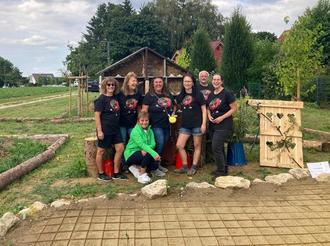 Aus einer kleinen Maßnahme wurde, nachdem die zweite Vorständin, Sybille Rünzler, die Idee für den Förderantrag beim Regionalbudget hatte, ein Riesenprojekt mit einer ökologischen Fläche mit Sandarium, Blühwiese, vielen Bäumen und einem Insektenhaus – als wichtiger Beitrag zum Artenschutz und zur Förderung der Biodiversität.