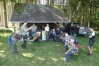 Nachdem alle Kinder mit Warnwesten ausgestattet waren gings in den Wald. Der war plötzlich voller Tiere – Sperber, Habicht, Marder, Eichkätzle, Hase – ein Wildschwein wurde vom Hochstand mit Fernglas ausgemacht und der Fuchs aus dem Bau gezogen. Spuren wurden gesucht und mit Schautafeln der Lebensraum erklärt. Mit totaler Spannung fanden die Kinder mit der Drohne sogar zwei Kitze im hohen Gras. Michael Stadlmayer erklärte die auch die Kitzrettung mit lauter Sirene und Lichteffekten und, und, und - ein hervorragendes Ferienprogramm gesponsert von Christoph Kunad der ihnen auf den Nachhauseweg auch noch Infomaterial und eine Becherlupe - um weiter der Natur nahe zu sein – mitgab.