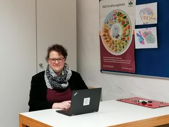 Angelina Günther, Gründerin von Voll.Wert.Zeit, bei der Arbeit in ihrem neuen Büro im Rathaus Emersacker – bereit, mit Herz und Expertise frische Impulse für Gesundheit und Ernährung zu setzen.