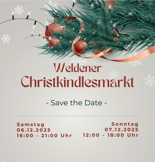 Am zweiten Adventswochenende findet wieder unser Weldener Christkindlesmarkt statt. Dazu möchte ich Sie bereits heute recht herzlich einladen.