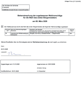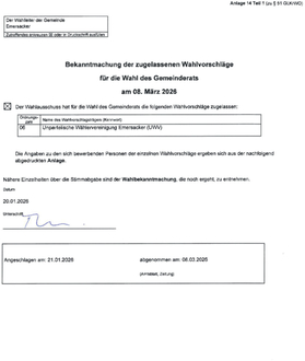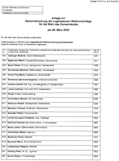 Bekanntmachung zugelassene Wahlvorschläge