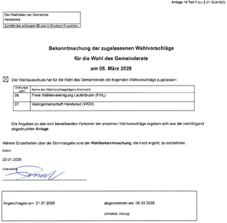 Vorheriger Artikel: Bekanntmachung zugelassene Wahlvorschläge