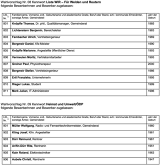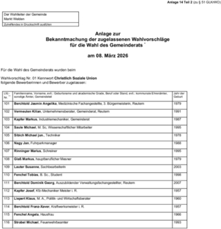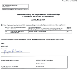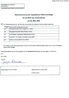 Bekanntmachung zugelassene Wahlvorschläge
