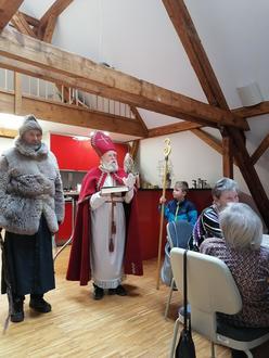 Der Nikolaus zusammen mit Knecht Ruprecht beim Seniorennachmittag in Emersacker.