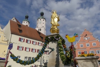 Am Sonntag, den 26. März 2023 findet der traditionelle Ostermarkt in Wemding statt. Pünktlich dazu bekommt auch der Marienbrunnen am Marktplatz sein österliches Kleid. Zusätzlich zum Fierantenmarkt (ab 9 Uhr) öffnen beim verkaufsoffenen Sonntag um 12:30 Uhr die Geschäfte mit Aktionen und Frühjahrstrends. Kinder können sich auf ein großes Karussell auf dem Marktplatz freuen, außerdem verteilt der Solarenergie-Förderverein (SFV) an Kinder sonnengelbe Heliumluftballons (solange Vorrat reicht) an seinem Infostand.