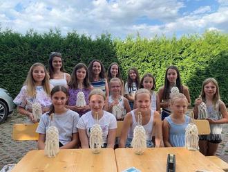 Am Freitag, den 05.08.22 fand unser diesjähriges Ferienprogramm statt. Diesmal hatten wir uns für etwas Kreatives entschieden, denn in der Bücherei gibt es neben Lesebüchern auch viele Bastel- und Sachbücher. Unsere Büchereiteenies erklärten den Mädels, die sich dafür angemeldet hatten, die Kunst des Makrameeknüpfens. Alle waren sofort Feuer und Flamme und knüpften konzentriert Makrameeknoten. Daraus entstanden tolle Dekolichter für Zimmer und Terrasse. Zum Abschluss gönnten wir uns noch ein Eis und bestaunten alle Werke. Es wurde auch noch in unseren neuen Büchern zu diesem Thema geblättert.