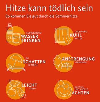 Aktuell erleben wir häufiger Hitzewellen, die Gesundheitsrisiken mit sich bringen. Gerade im Alter oder bei schwerer Erkrankung, kann dies zu gesundheitlichen Problemen führen.