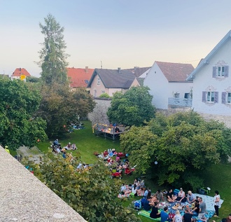 Es war schön anzusehen, wie viele Gäste der Einladung zu einem gemütlichen Picknick im Stadtgraben gefolgt sind und ihre Picknickdecken, Leckereien und Getränke mitgebracht haben. Der Solosänger Ben Stone unterhielt mit seiner Akustikmusik rund 150-200 Gäste über den Sommerabend.