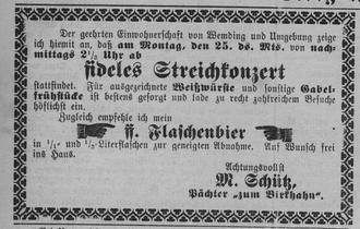 Foto: Anzeige aus dem „Wochenblatt für Wemding und Monheim nebst Umgebung“ vom 21.12.1899 - Stadtarchiv Wemding